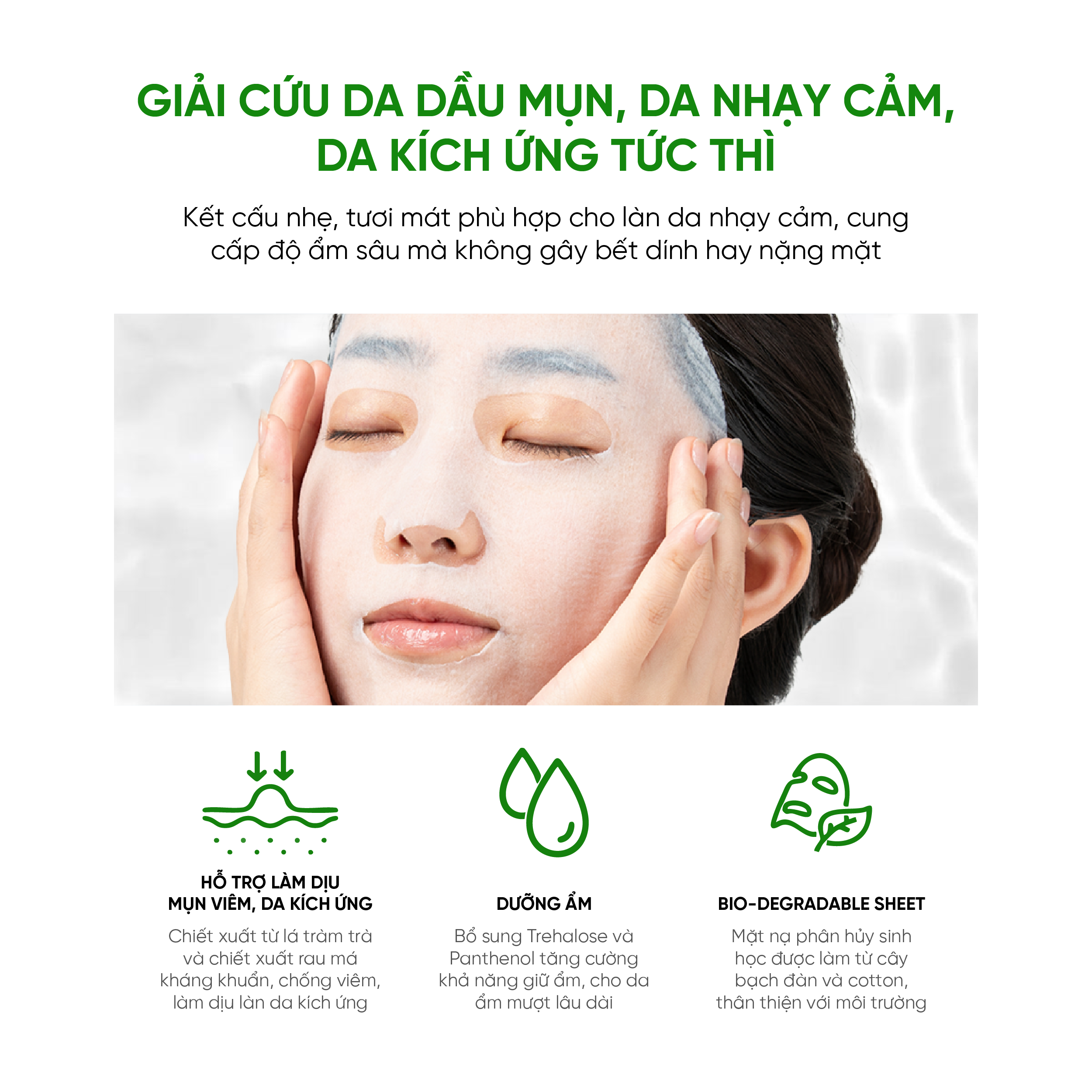 – Kiểm soát dầu mụn và làm dịu da nhạy cảm, da kích ứng